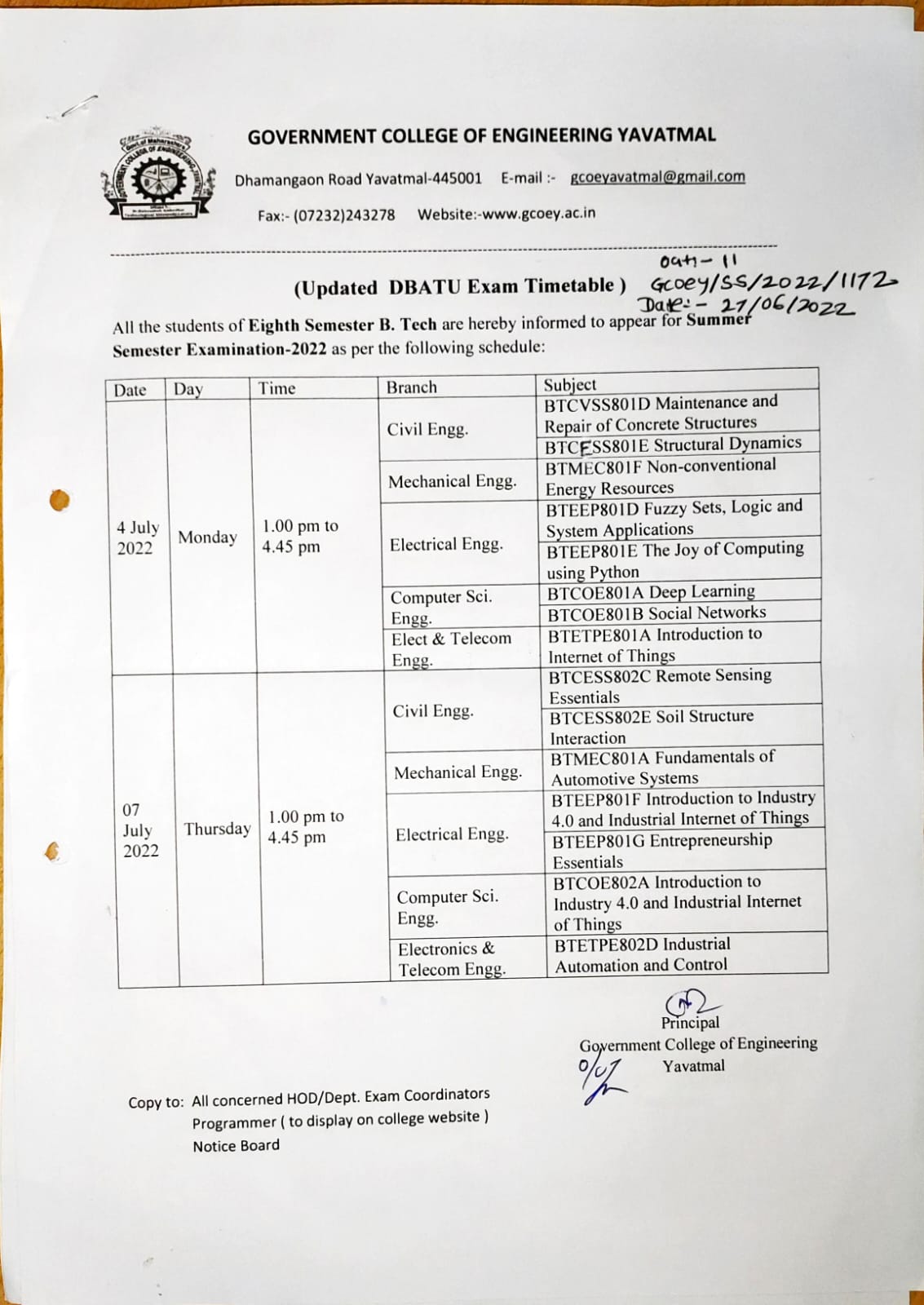 Remedial Examinations Summer 2022(For II & VIII sem) |