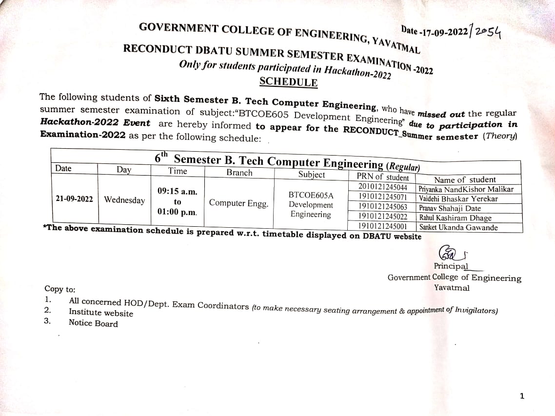 Summer-Exam Time Table for students participated in Hackathon-22 |